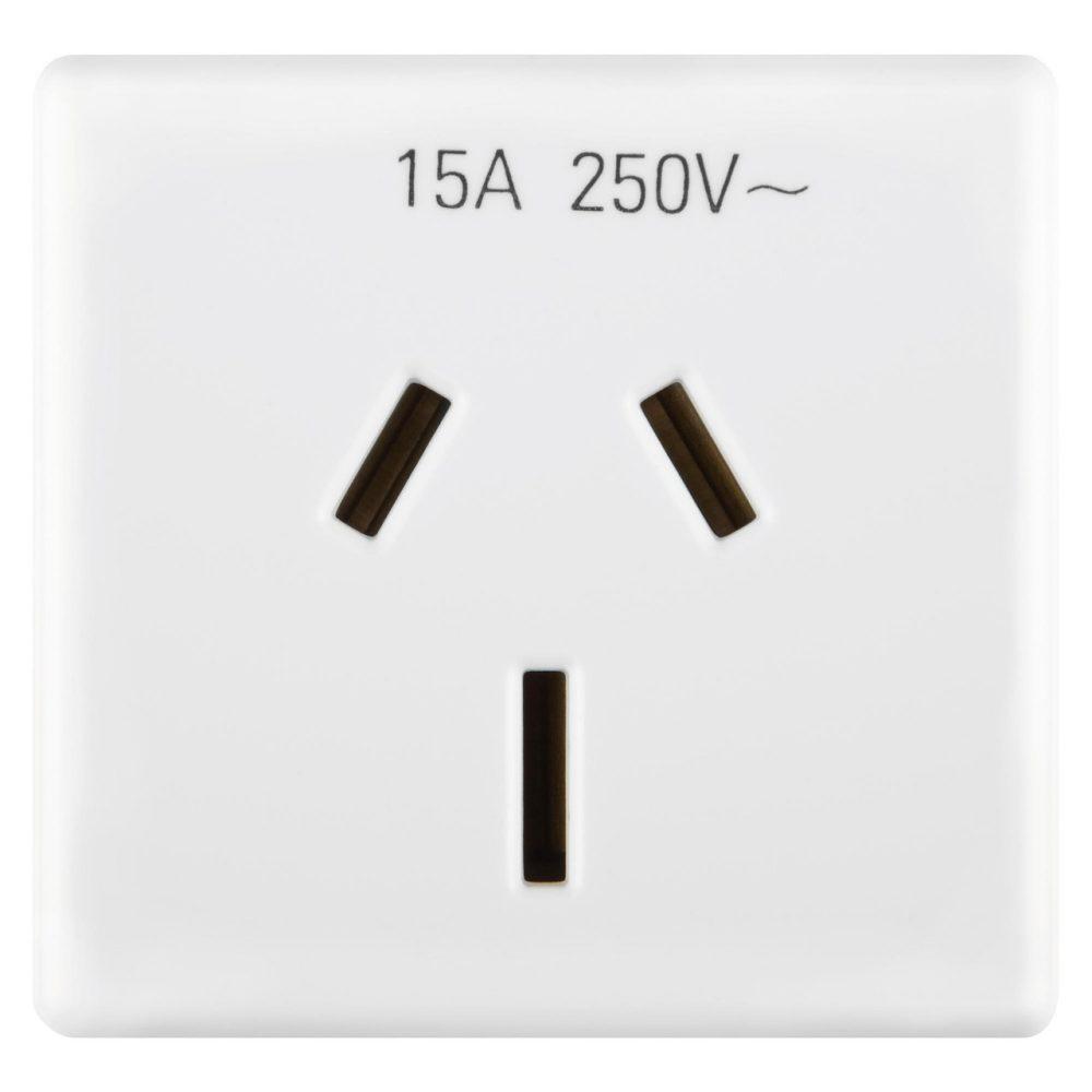 STANDARD AUSTRALIAN SOCKET 250V ac - 2P+E 15A - FLAT SPINTS - 2 MODULES - SYSTEM WHITE