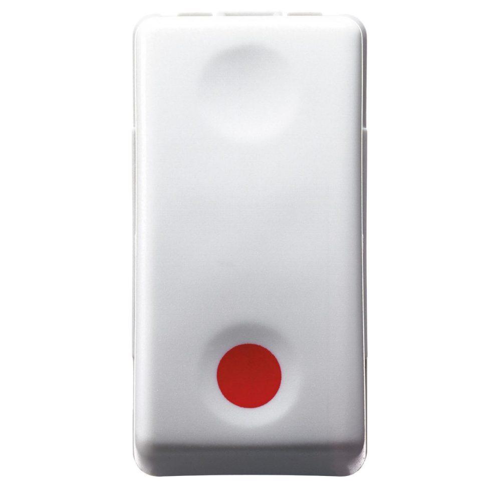 UNIPOLAR BUTTON 250V ac - NC 10A - NO AUXILIARY CONTACT - STOP - RED SYMBOL - 1 MODULE- SYSTEM WHITE