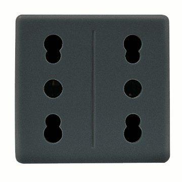 ITALIAN STANDARD DOUBLE SOCKET 250V ac - 2X2P+E 16A BIVALENT - P11-P17 - 2 MODULES - SYSTEM BLACK
