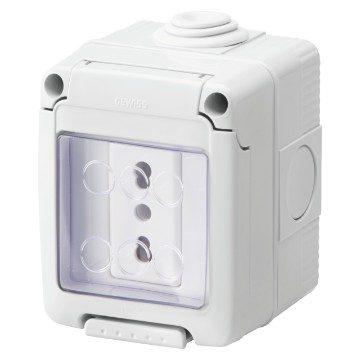 COMPLETE ENCLOSUREAPPARECCHI SYSTEM WATERTIGHT - WITH SOCKET 2P+T 16 A BIVALENT - ITALIAN STANDARD - IP55 - GRAY RAL 7035