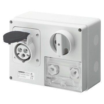 HORIZONTAL INTERLOCKED FIXED SOCKET - WITH BOTTOM - WITH FUSE HOLDER BASE - 3P+N+T 32A 480-500V - 50/60HZ 7H CBF - IP44