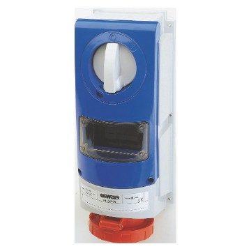 VERTICAL INTERLOCKED FIXED SOCKET - BOTTOMLESS - HEAVY DUTY - WITH FUSE HOLDER BASE - 3P+T 32A 380-415V-50/60HZ 6H - IP66
