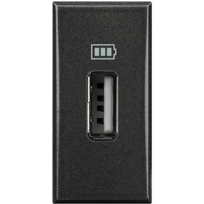 USB charger with 5 Vd.c. voltage for charging only electronic devices up to 1500 mA such as cell phones, smartphones, tablets and similar power supply 230 Va.c. 1 module Anthracite