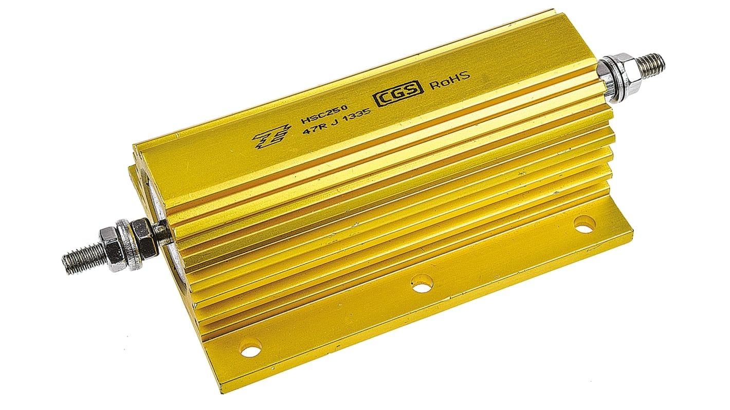 47 Ω, Wire Wound, Power Resistor, 163 x 73 x 42 mm, 2 Termination, Loose Piece - Box, 5 %, 250 W, ±50 ppm/°C, M6 Threaded Stud Termination, CGS HS; Alias: HSC250 47R 5%
