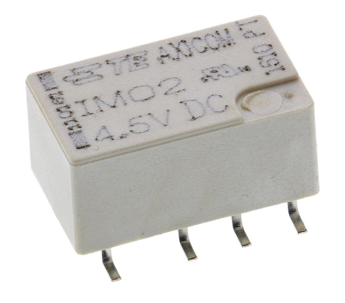 Signal Relays, 220 VDC Contact Voltage, 250 VAC Contact Voltage, 140 mW Coil Power (DC), Printed Circuit Board, PCB-SMT, Axicom IM Alias: A86831-000IM02GR=IM RELAY 140mW 4.5V