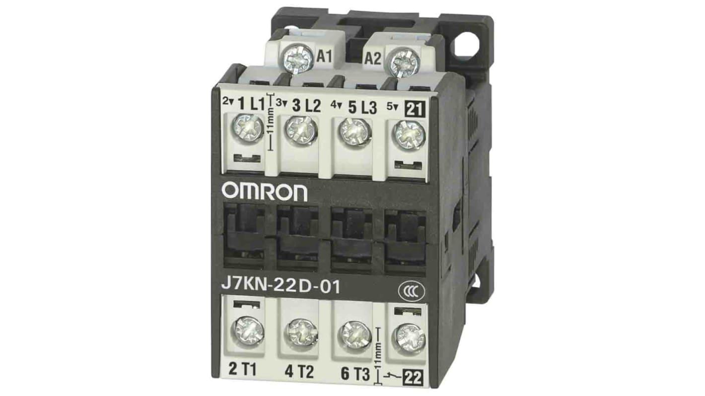 The Omron J7KN series motor contactor equipped with 3 main poles. This modular system consisting of main contactors and additional contact blocks.