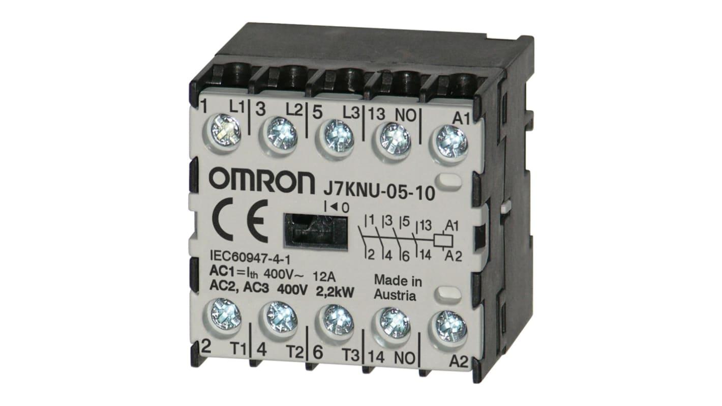 The Omron micro contactor is equipped with 4 poles. It has a rated current of 12 A. It has a capacity of 2.2 kW.