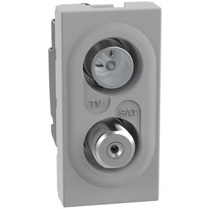 Direct demixed coaxial receptacle for single-user TV antenna systems including remote and centralized shunt, single-user and centralized satellite systems in shunt with power and signal passage for channel selection TV connector male 9.5 mm SAT connector type F 1 module gray