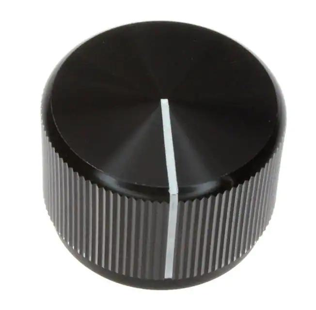 Switch Knobs, Knob, Aluminum, Straight Knurl Knob Design, 6.35 mm [.25 in] Shaft Size, 23.8 mm [.937 in] Diameter, Black, Line, Alcoswitch KLN Alias: KLN900B1/4=KNOB KNURL W/IND LI