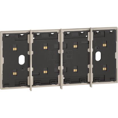 Electrified frame with removable aesthetic dividing bars between controls. For installation of up to 4 digital controls or cover art. KWKGKM8100. Installation in 4-module box with K4704 support. Sand color.
