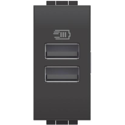 USB charger with two Type A ports for charging a single electronic device up to 15W or two devices simultaneously. Output voltage 5 Vd.c. DIRECT power supply 100240Va.c. 5060 Hz 1 module Anthracite
