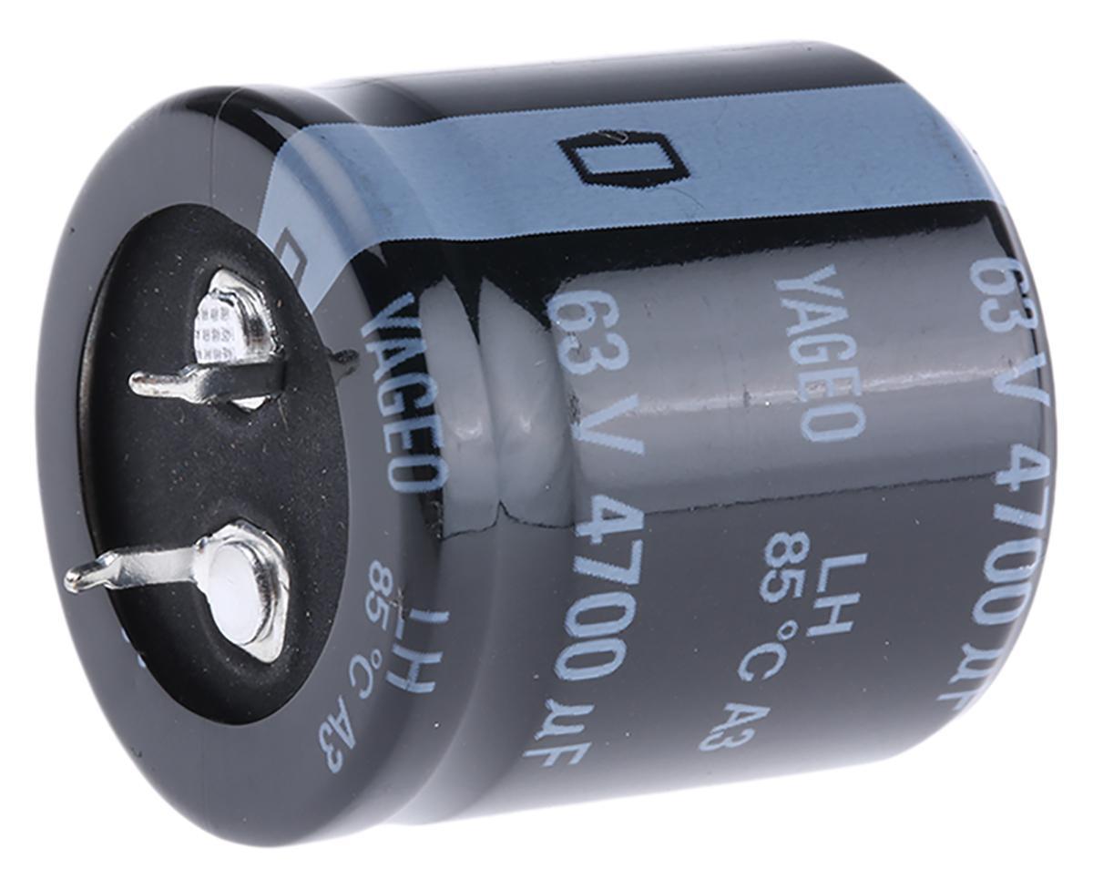 Yageo, LH063M4700BPF-3030, AVX Aluminium Electrolytic Capacitor 4700 F 63V dc 30mm LH Series, Through Hole Electrolytic, 20% 30 (Dia.) x 30mm