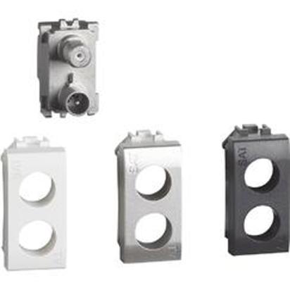 direct demixed coaxial socket for single-user TV antenna systems also remote and centralized in shunt, single-user and centralized satellite systems in shunt with power and signal passage for channel selection TV connector male 9.5 mm SAT connector type F supplied in package with neutral motor and finishing badges in same colors as mechanisms 1 module