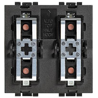 Two-module flush-mounted LivingLight control with 3 pushbuttons and 3 two-color LEDs made to work ONLY in conjunction with LN4661M2 flush-mounted evolved actuators or DIN module F401 specifically for shutter management.