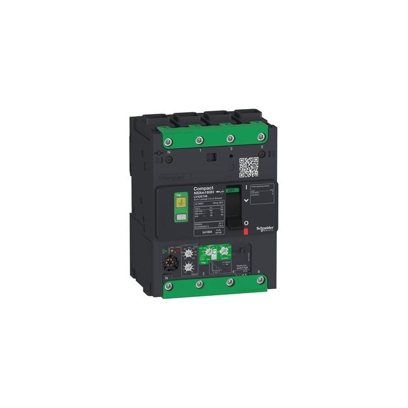 circuit breaker Compact NSXm E (16 kA at 415 VAC), 4P, 160 A rating Micrologic Vigi 4.1 trip unit, EverLink connectors