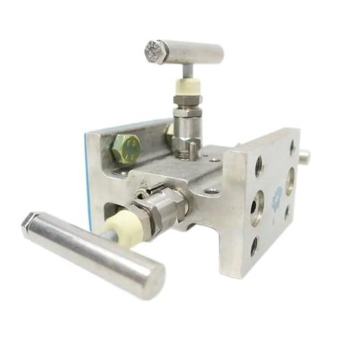Series M4A, Valves 2-Block, 1-Equalize, Connections Flange x Flange, Body 316SS, Packing Teflon, Seat Integral, Rating 6000 PSIG at 200 F, 4000 PSIG at 500 F, NACE MR0175, AGCO Valve Manifold