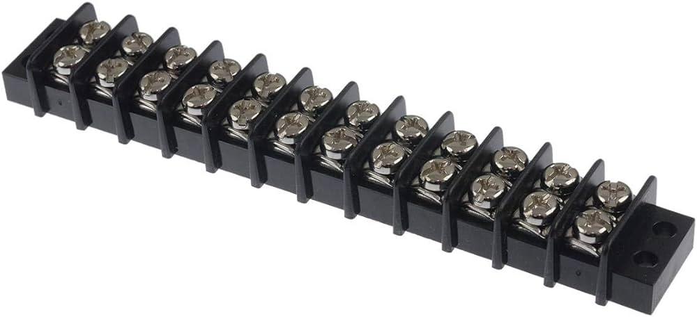 Panel Mount Barrier Terminal Block, 12 Positions, 14 AWG 2 Row 22 AWG 9.5 mm 20 A-6pack