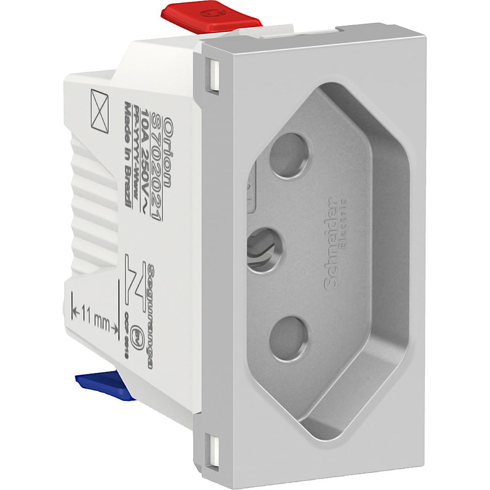 MÓDULO TOMADA 2P+T 10A BORNE AUTOMÁTICO ALUMÍNIO ORION S70205174 Módulo tomada 2p+t 10a 250v, orion, schneider electric