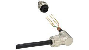 M12 Right Angle Plug Sensor Connector, 4 Poles, D-Coded, Crimp