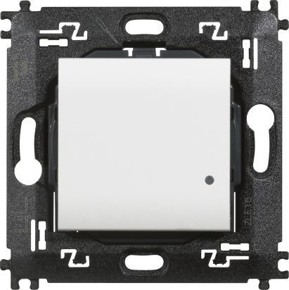 Wireless light control. Allows ONOFF control of one or more connected devices to control lights. Surface installation with repositionable stickers provided or on recessed boxes. Built-in LED for low battery indication. Battery power supply 3 V type CR2032 supplied with 8 years autonomy 2 modules.