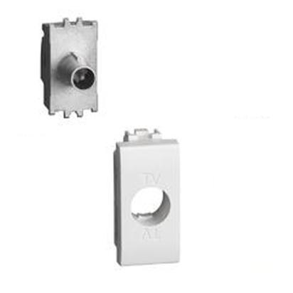Coaxial terminal feed-through jack, 10dB attenuation, for centralized antenna systems including telecentralized and centralized and centralized satellite systems with current and signal feed-through for channel selection shielded connection terminals with captive screws 9.5 mm male connector impedance end adapter 75 built-in color white 1 module.