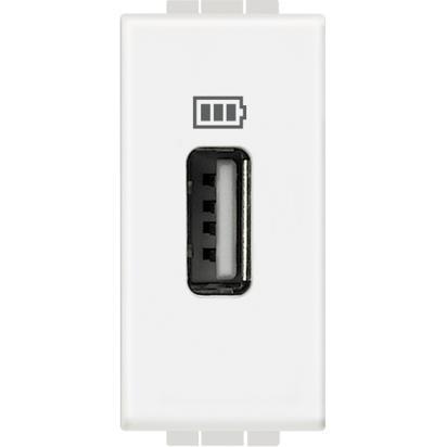 USB charger with 5 Vd.c. voltage for charging only electronic devices up to 1500 mA such as cell phones, smartphones, tablets and similar power supply 230 Va.c. 1 module White