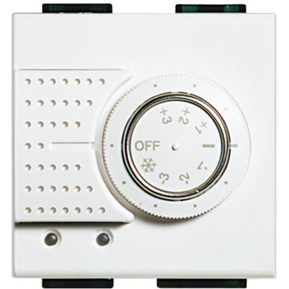 Livinglight probe for room temperature control for heating and cooling systems. Equipped with knob for 3 C variation from the temperature set in the control unit and for selecting OFF and antifreeze modes 2 modules.