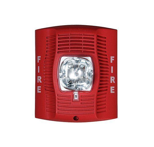 The SpectrAlert Advance SPSR is a red speaker strobe for wall installation with selectable strobe settings of 15, 15/75, 30, 75, 95, 110 and 115 cd.