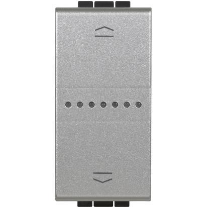 Wired rolling shutter switch. Allows you to control a shutter locally or remotely, also managing the opening level. compatible with all shutters with mechanical or electronic limit switches controlled by a wired shutter switch max power 500 VA. Can be associated with one or more wireless controls. Not compatible with radio-controlled rolling shutter motors. Attention required connection to neutral. Power supply 100230 Va.c. 1 module.
