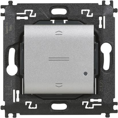 Wireless shutter control. Allows control of one or more connected shutter controls. Surface installation with repositionable stickers provided or on recessed boxes. Built-in LED for low battery indication. Battery power supply 3 V type CR2032 supplied with 8 years autonomy 2 modules
