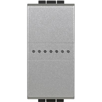 Connected interredimmer. Allows lights to be controlled locally or remotely via HomeControl APP. It installs like a traditional switch and is compatible with incandescent or dimmable LED loads, capacitive type, with max. 150W power at 230Vac. It is equipped with a blue LED for location and load status functions, configurable by APP. It can be connected to one or more traditional buttons or associated with one or more wireless controls. Attention the dimmer function is activated only by APP and connection to neutral is required. Power supply 110230 Va.c. 1 module