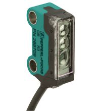 Sensor de triangulação com avaliação de fundo para aplicações padrão, design em miniatura, faixa de detecção de 30 mm, luz vermelha, luz acesa, saída NPN, cabo fixo, saída de cabo de 45 ° para máxima liberdade de montagem sob restrições de espaço extremamente restritas, Melhoria na disponibilidade da máquina com abrasão- resistente, frente de vidro antiestática, Detecção de objetos planos na frente de um fundo próximo, Ponto de luz altamente visível, mesmo em materiais escuros