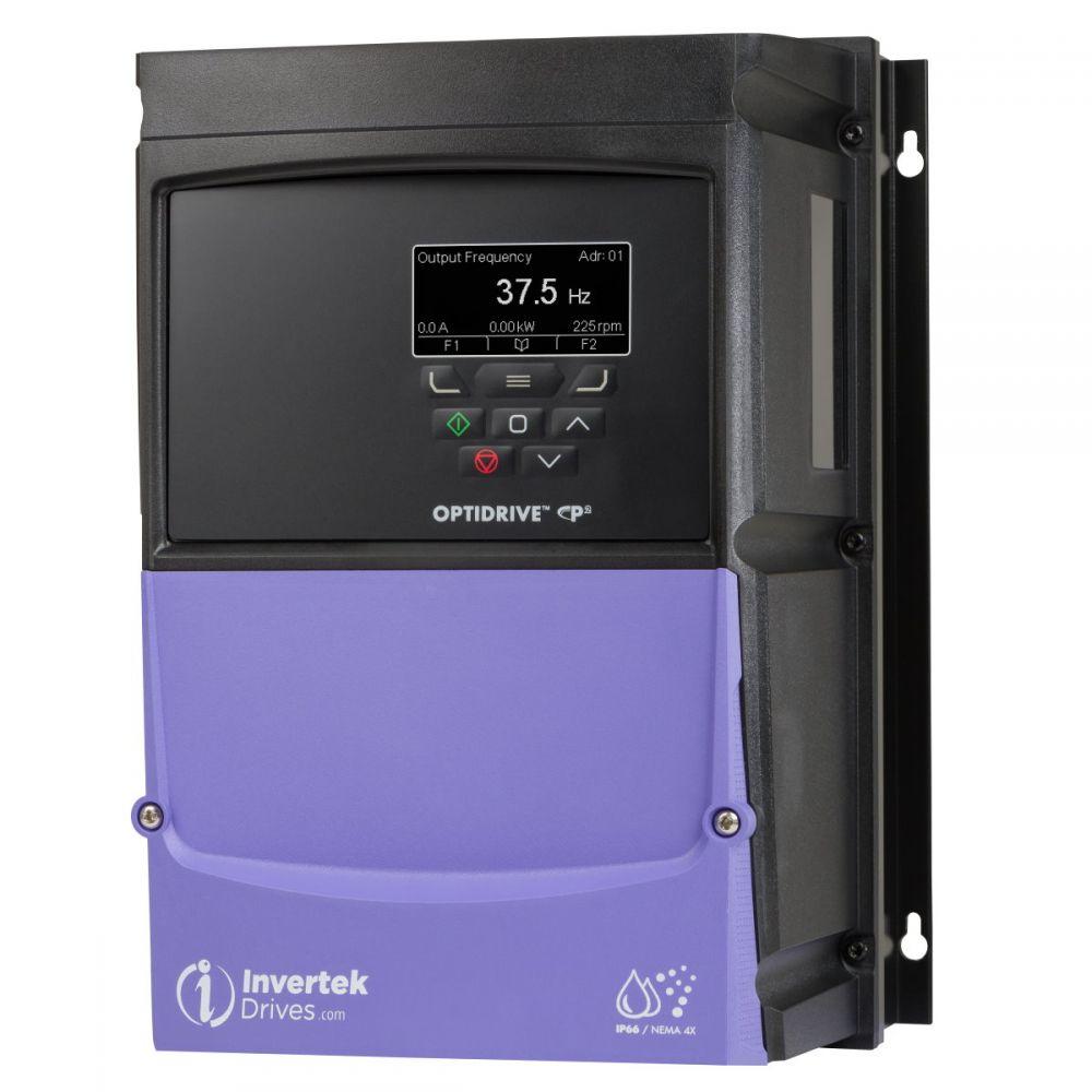 Optidrive P2 VFD, 11 kW, 24 A, 380-480 V, 3PH, IP66 Non Switched Outdoor Variable Frequency Drive with EMC Filter and TFT Display