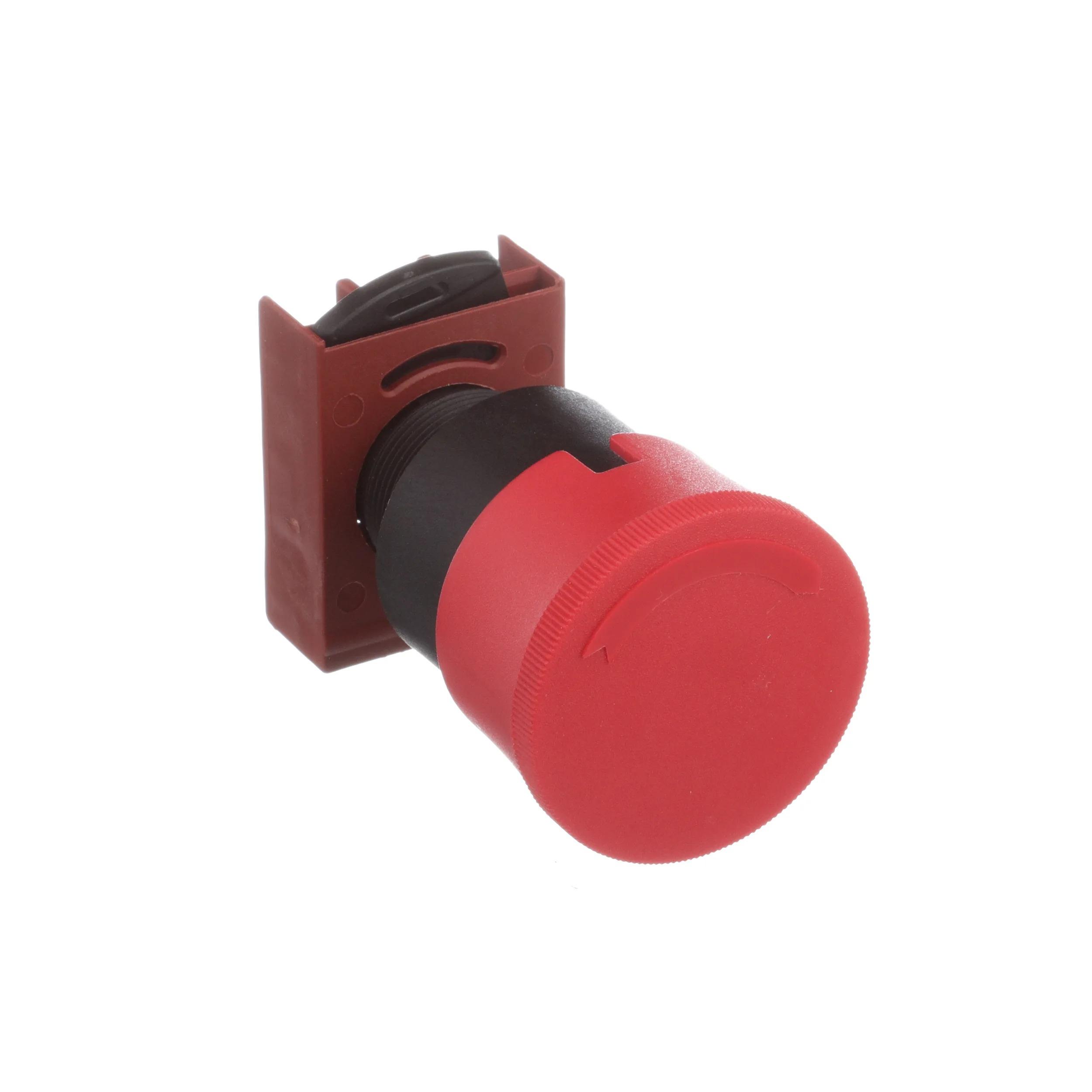 PUSHBUTTON, EMERGENCY STOP, MUSHROOM HEAD, 40 MM, ROUND, PLASTIC, PUSH/TWIST TO RELEASE, RED