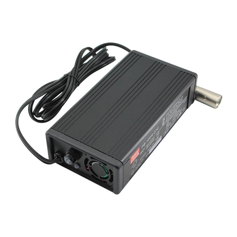 AC-DC Desktop power supply or battery charger with PFC; Input 3 pin IEC320-C14 input socket; Output 27.6VDC at 4.3A with 3 pin XLR plug; With case