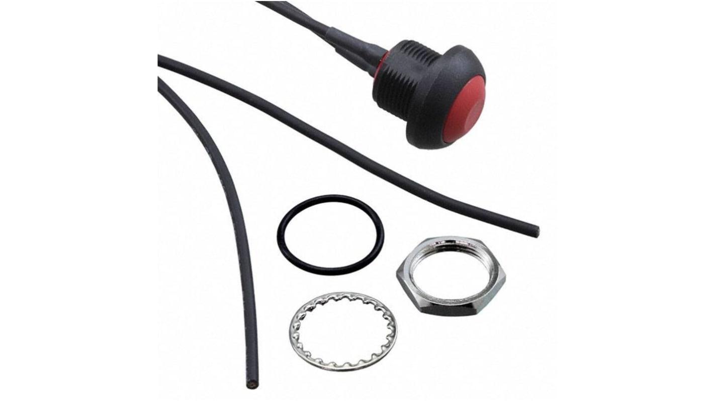 Push Button Switches, Single Pole - Single Throw Configuration (Pole-Throw), Switch, Single Actuator, Flush Actuator Profile, Threaded, Alcoswitch PB6; Alias: PN OFF/ON FC RED M1 TERM IP68 500MM LHS