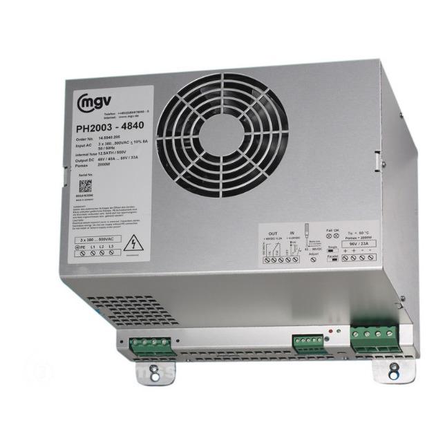 POWER SUPPLY, INPUT: 3 X 380-500 VAC +10%, 8 A, 50/60 HZ, OUTPUT: 48 V/40 A, 60V /33 A, INTERNAL FUSE: 12.5 ATH/ 500 V, POMAXD: 2000 W, MGV PH2003-4840