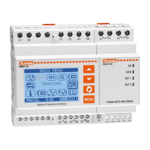 Interface protection unit compliant with italian standard CEI 0-21, for single-phase and three-phase system, with or without neutral, in low voltage, dual threshold minimum and maximum voltage and frequency protection, 230VAC - 400VAC. PMVF51
