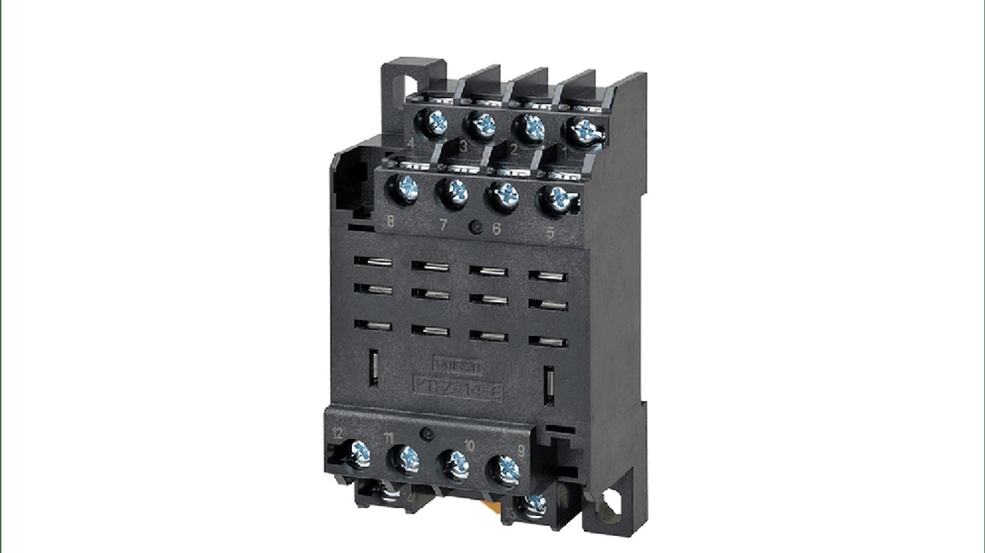 Omron front-mounted female connector used with LY series bipolar relays. mounted on DIN rail or with screws.