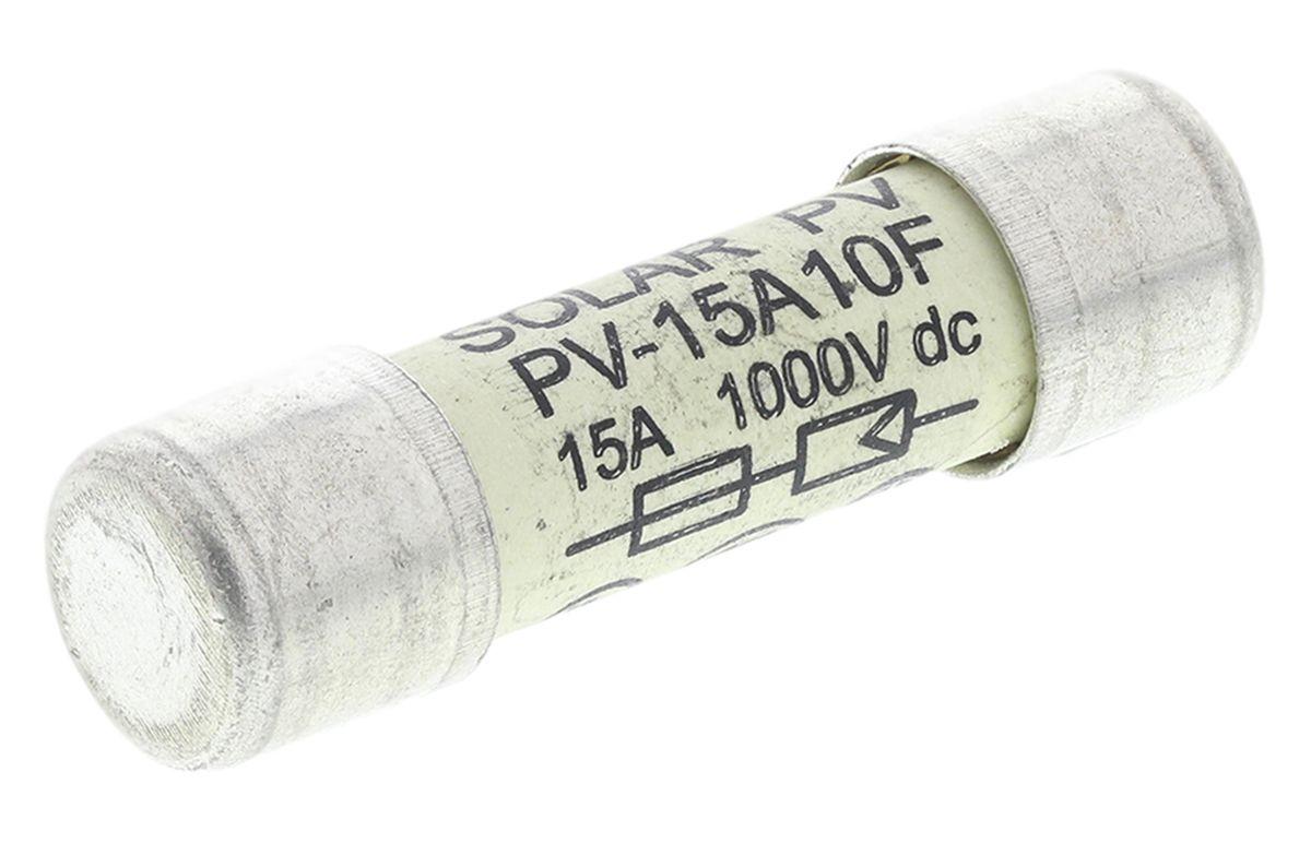 Eaton Bussmann series photovoltaic fuses, 1000 Vdc, 15A, 50 kAIC, Non Indicating, IEC 60269-6 type A, Class gPV, Time constant: 1-3 ms, Ferrule end x ferrule end
