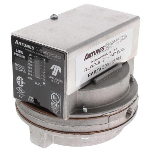 LOW GAS PRESSURE SWITCH, 1-6" WC 25-150MM, 1/4"NPT GAS INLET, 1/8"NPT VENT