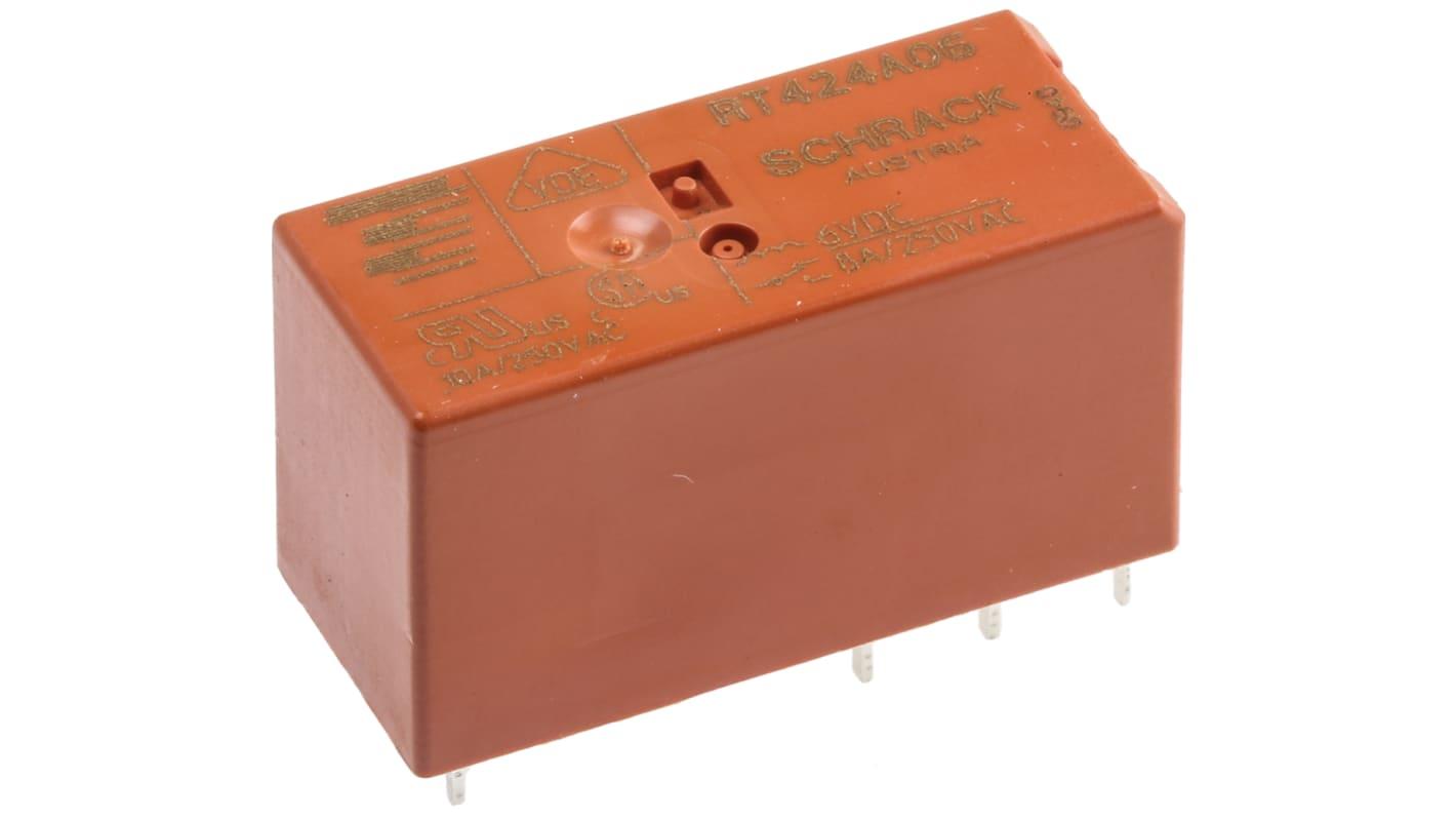 Power Relays, Standard, Bistable, 1 Coil, Polarized, 400 mW Coil Power Rating DC, 90 Ω Coil Resistance, SCHRACK Power PCB Relay RT2 Alias: RT424A06