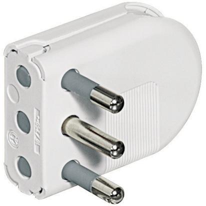 Space-saving 2PT 16A ivory-colored flying plug with 3-position adjustable cable outlet and pivoting plugs
