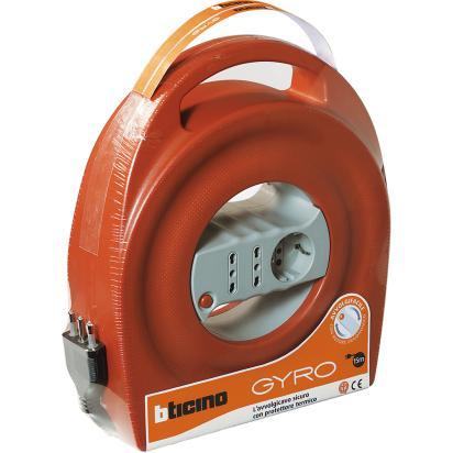 Gyro cable reel with 3x1.5mmq cable length 8m 2 2PT two-pin sockets and 1 German socket 2PT 16A plug with thermal protector