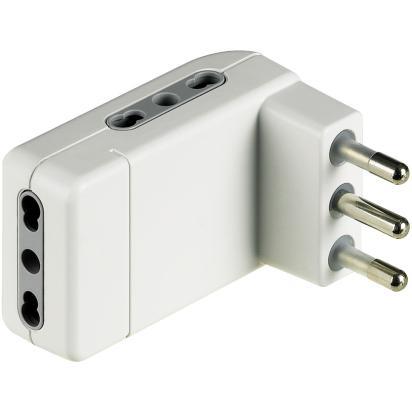 Corner space-saving adapter with 3 two-pin 1016A outlets and 16A plug in white color