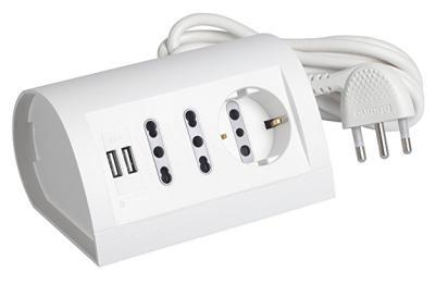 Desk multisocket 2 two-pin 1016A and 1 German P30 outlet with 2 USB 2.1 A distributed 5Vdc powered 2 m cable with 16A plug white color in blister 150x170mm