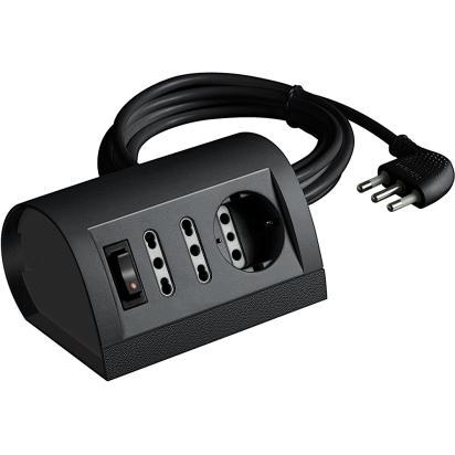 Desk multisocket 2 two-pin 1016A and 1 German P30 outlet with light switch and cable plug 16A anthracite color in blister 150x170mm