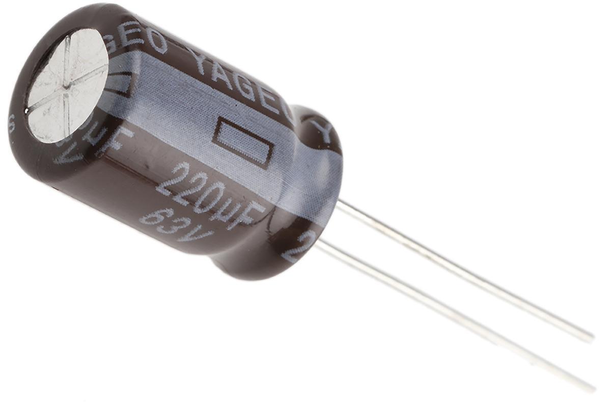 Yageo capacitor, SE series, 220 F, 63V dc, 20%, 105 C, On hole