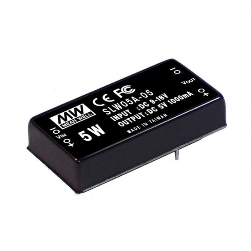 DC-DC Converter PCB mount; Input 9-18Vdc; Output 5Vdc at 1A; DIP Through hole package; Built-in EMI filter; 2" x 1" ultra compact size