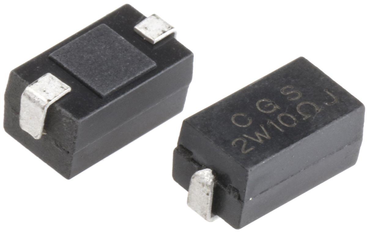 10 Ω, Wire Wound, Power Resistor, 5 %, 2 Termination, Taped & Reeled, 2 W, ±200 ppm/°C, Solder, 4 x 6.7 x 3.55 mm, CGS SM; Alias: SMW2 10R 5%